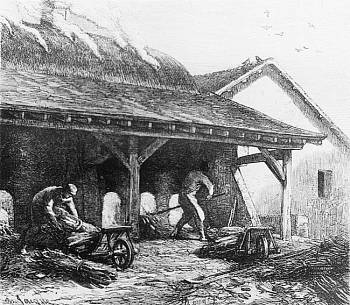 Fabrication des pains de Blanc à l’entrée1de la carrière.